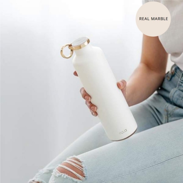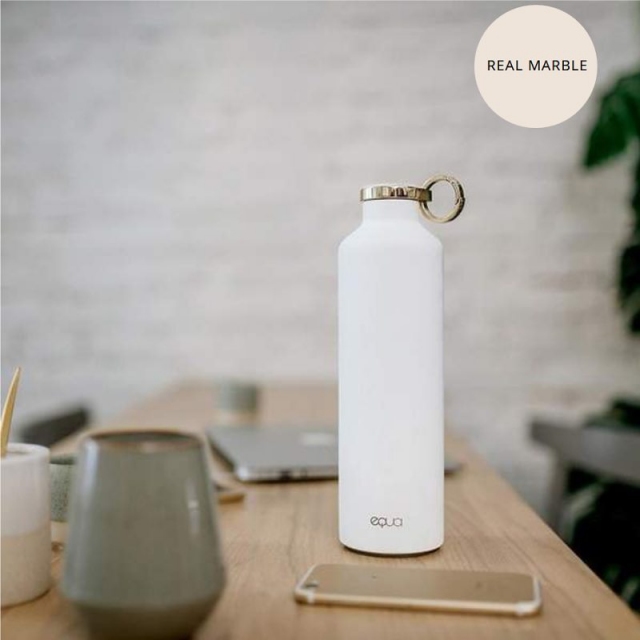 Stylové a ekologické termosky Equa skvěle nahrazují jednorázové plastové PET láhve. Díky kvalitnímu těsnícímu víčku se nic nevyleje a výborně se z nich pije. Dvojitá izolace stěny udržuje vodu studenou 24 hodin a horkou po dobu 12 hodin. Víčko je vyrobeno z galvanicky upraveného kovu a je ozdobeno kovem nebo skutečným mramorem. Víčko je 100% těsnící, aby nedocházelo k úniku tekutin.