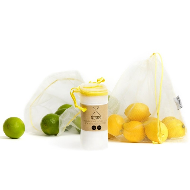 Frusack je vyroben z kompostovatelné tkaniny na bázi kukuřičného škrobu. Materiál má vlastnosti běžného plastu s tím rozdílem, že po konci užívání se ho lze zbavit ekologicky v prostředí průmyslové kompostárny. Tento materiál je světovým unikátem. Frusack byl navržen a vyrábí se v České republice za férových podmínek pro dodavatele.