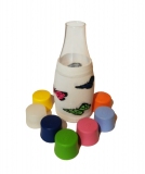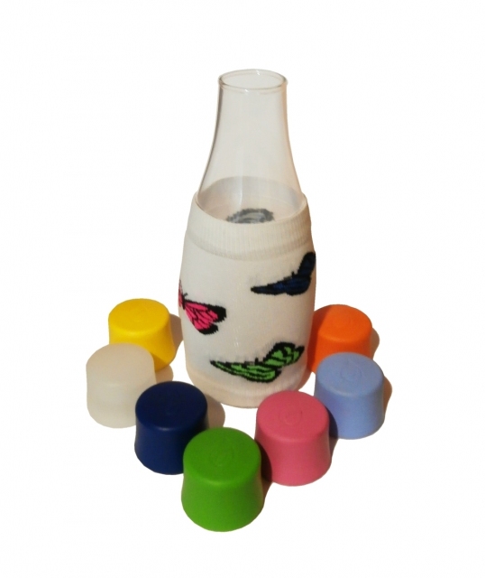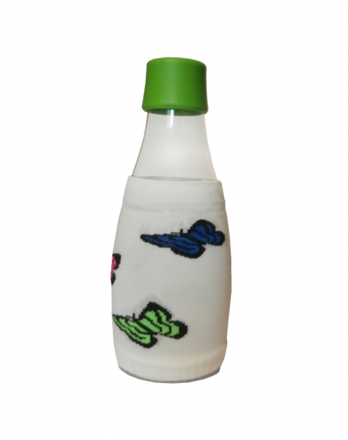 Návleky na skleněné lahve ReTap jsme si nechali vyrobit u menšího českého výrobce s vybranými motivy barevných motýlů.