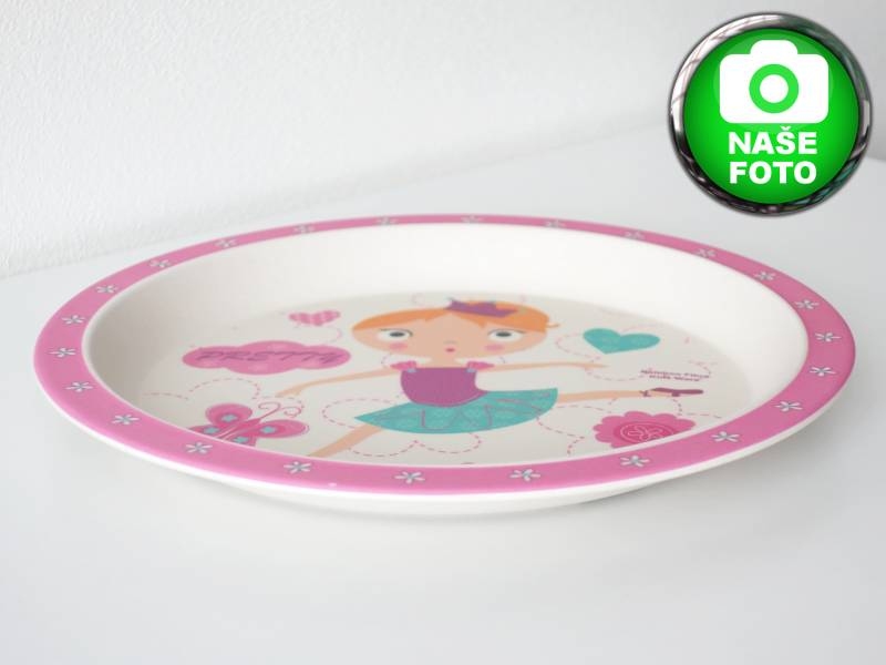 Bambusový talířek pro děti s barevným motivem je vyroben z bambusového vlákna, melaminu a zdravotně nezávadného barviva.